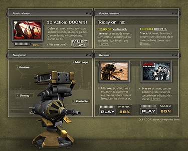 Šablóna obsahuje: :: PSD :: HTML :: FONT :: FLA Potrebný softvér: :: Adobe Photoshop :: HTML editor :: Macromedia Flash Cena šablóny: 33.16 € [999 Sk]